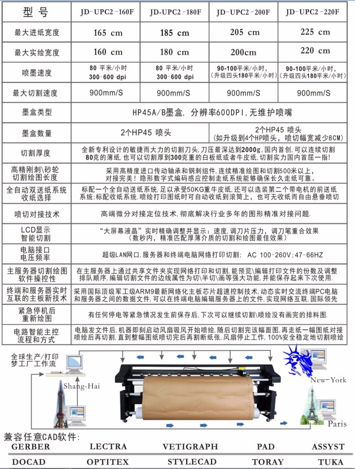 錦德UPC噴墨切割機(jī)器參數(shù)規(guī)格與說(shuō)明: