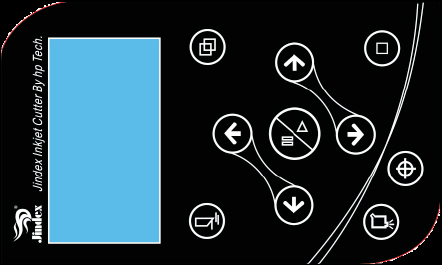 ⑧Large liquid crystal real-time dynamic display status of inkjet and cutting, and in this panel, you can adjust the function of knife pressure, cutting knife overlap, inkjet test, reset, stop, paper feed, and paper break after cutting.