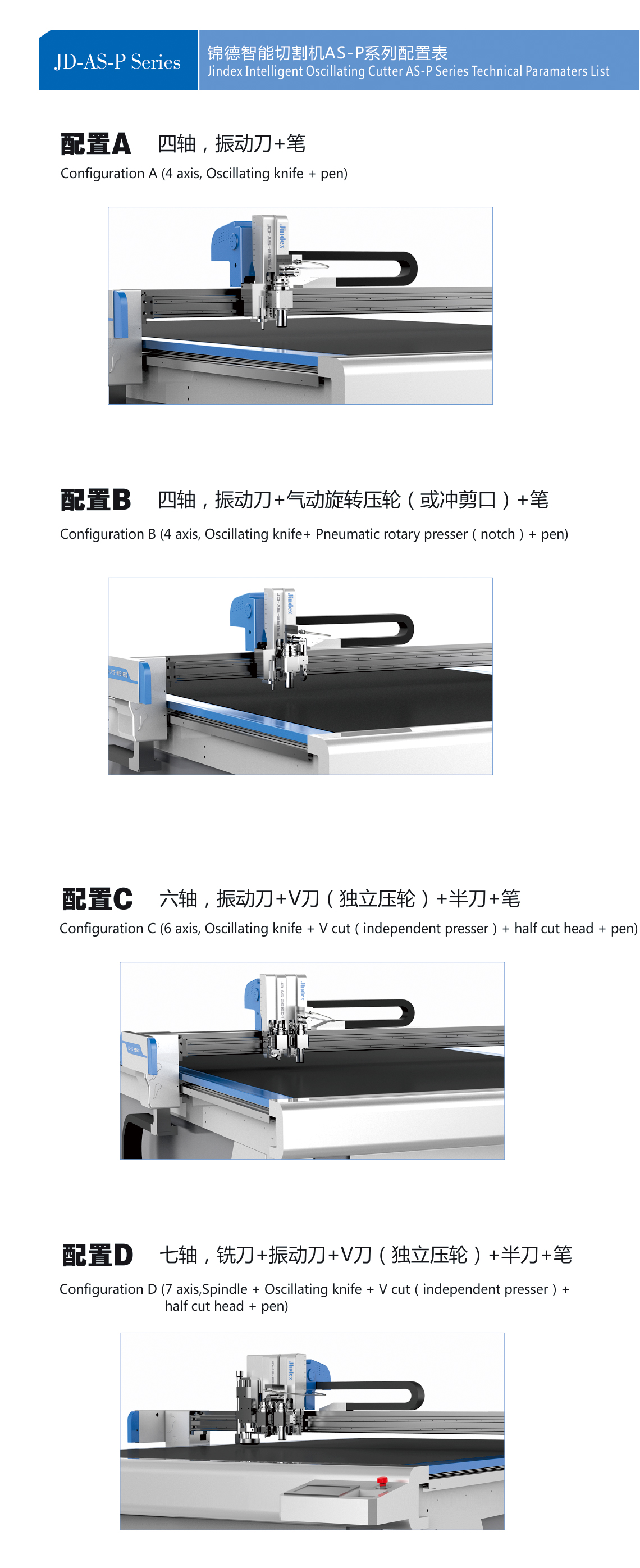 ◇ 配置振動刀、拖刀,筆畫工具以及可選配置半刀,銑刀,開槽刀,圓刀、壓痕刀等多種刀具,可實現(xiàn)寫字畫線、虛線裁切、半斷裁切、全斷裁切、銑刀裁切、多種材料V-CUT開槽、開銑槽、大小壓輪壓痕、硬質(zhì)材料刮痕等實用功能。