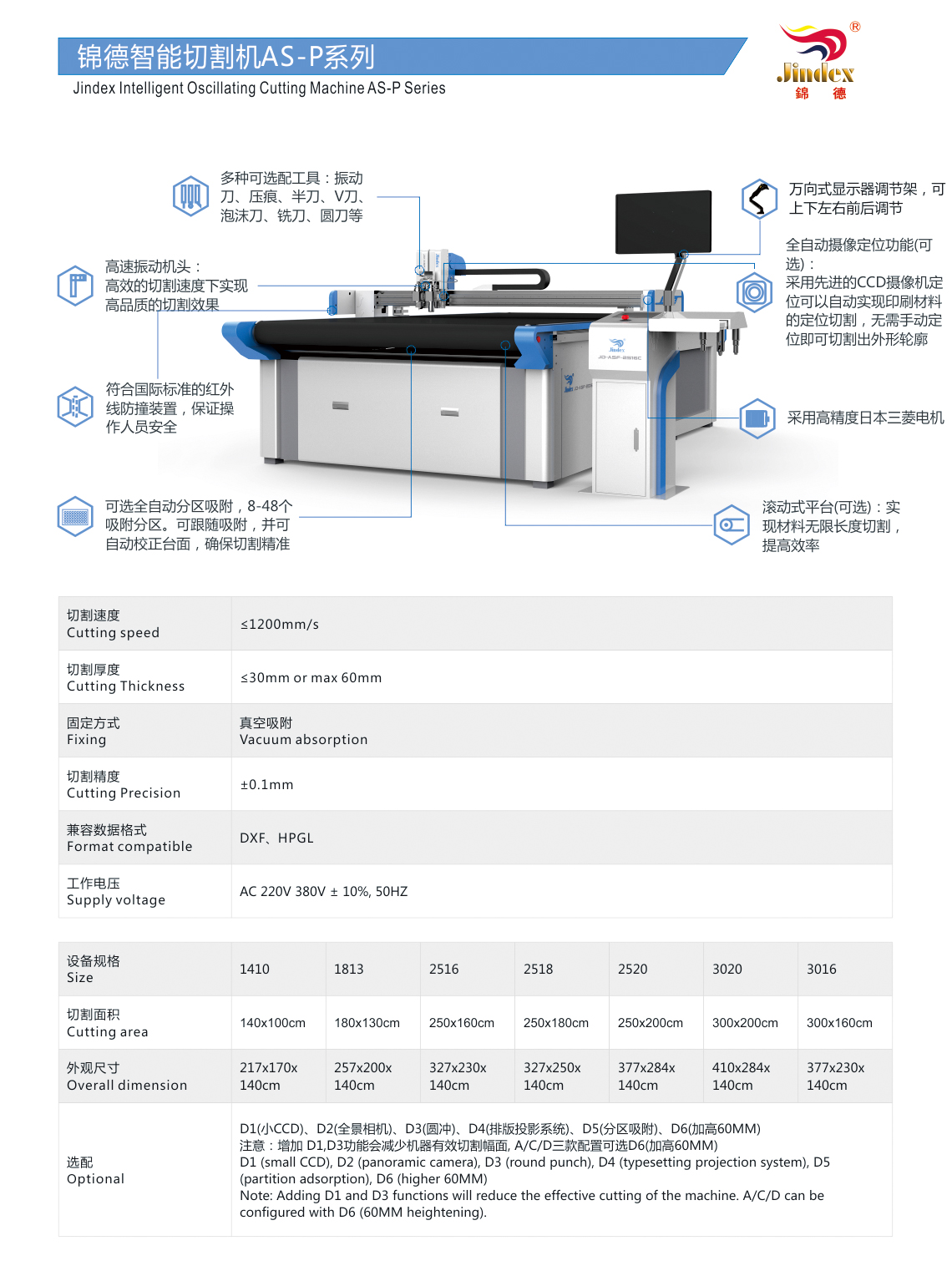Package & Box Cutting Machine JD-AS-P-C Series Electrical oscillating knife cutting head, strong strength, high vibra... MORE