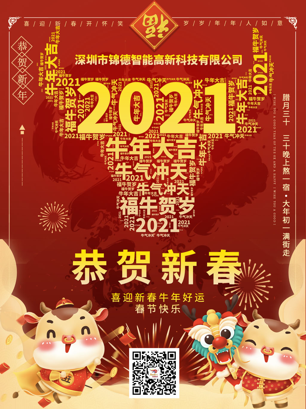2020年是不平凡的一年,但錦德收獲滿滿,我們即將揮別鼠年迎來牛年,在此辭舊迎新,迎接嶄新的2021之際,我謹(jǐn)代表錦德全體同仁向始終信賴、支持錦德發(fā)展的廣大用戶,以及社會各界朋友表示衷心的感謝,恭祝大家闔家團圓,財源廣進!