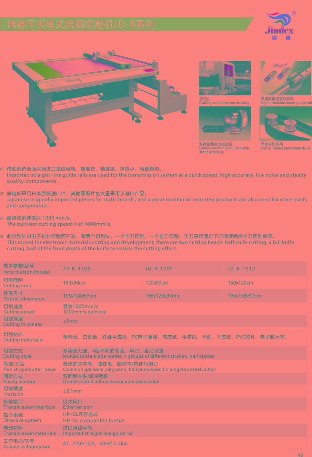 ●錦德電腦切割機采用進口直線導(dǎo)軌、知名品牌步進電機和伺服電機,切割速度快,切割過程平滑順暢,保障高精度樣板切割;切割精度完全達到往返原點零誤差。